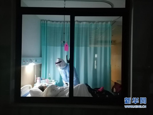 王苑华为患者监测血氧饱和度。新华网发(作者供图)