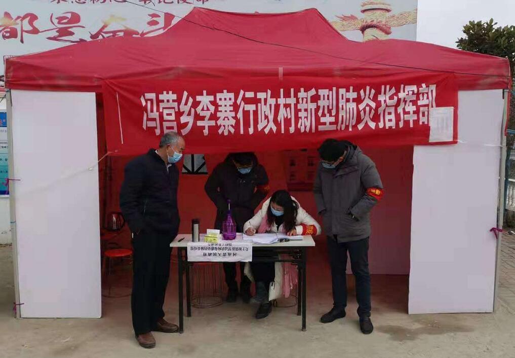 图为冯营乡党政办主任杨书兴(左四)统计疫区返乡人员及其密切接触者体温