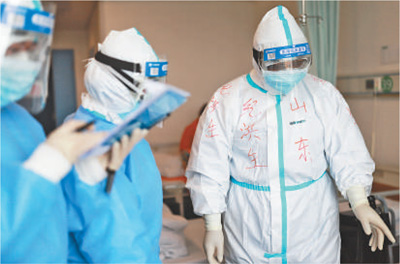 重症病人数字从49降到7!这些天,在武汉同济医院中法新城院区C7西病区,来自山东省立医院重症医学三科的主任医师纪洪生(见图,右一。资料照片)和同事们稍稍松了口气:他们已累计治愈74名患者。