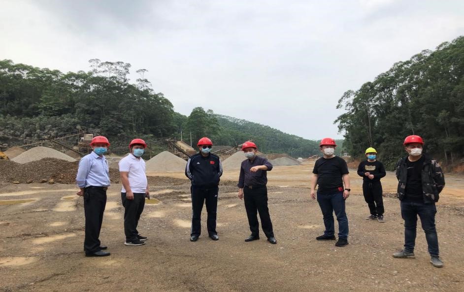 图为中房集团国际公司董事局主席谢雷听取钦州和田建材公司久隆石场等项目扩建增产工作,并强调要以市场和政策为导向,重新进行定位,把石场项目改造升级为“一带一路”东盟自贸区新型建材生产制造基地。(张欣鑫)