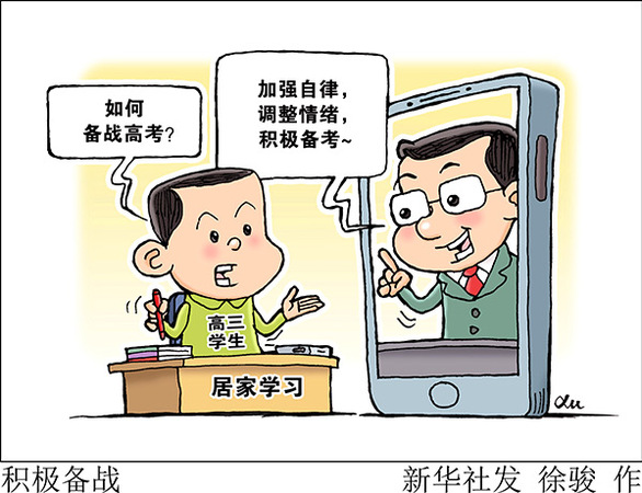 福州某中学语文教师林景文说,积极、进取的学习心态十分重要。虽是线上学习,也可以通过打卡、互动、表扬等方式,帮助学生调整情绪、积极备考。