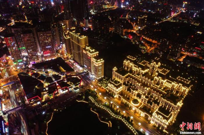 资料图:贵阳市区灯火通明的城市商圈和步行街。 瞿宏伦 摄