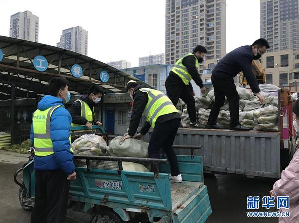 萝卜运抵郑州后,志愿者帮助卸车(2月5日摄)。新华社发