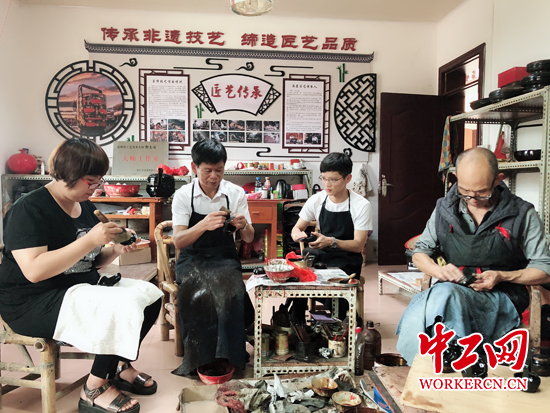 同时,郭志煌发挥漆篮技艺上的专长,做好传帮带,每年组织4期漆篮技术培训班,将贫困户全部纳入免费培训对象?;雇ü橹止ひ杖瞬渭邮∈衅嵋沾笫?、工艺美术大师评选,形成了漆篮产业人才梯队。