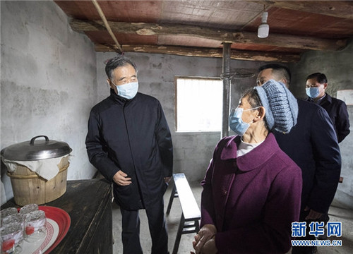 近日,中共中央政治局常委、全国政协主席汪洋在云南、贵州调研脱贫攻坚工作。这是4月24日,汪洋在云南昭通市镇雄县场坝镇摩多村委会老包脚村民小组的一户贫困户家中了解脱贫情况。 新华社记者 王晔 摄