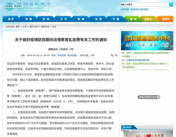 4月28日,陕西省教育厅发布《关于做好疫情防控期间治理教育乱收费有关工作的通知》,明确住宿费不得跨学年或学期预收,未住宿不得提前收取住宿费。已按学年或学期收取的住宿费,学校应根据学生实际住宿时间,科学计算,合理清退。