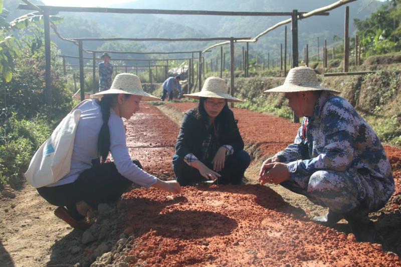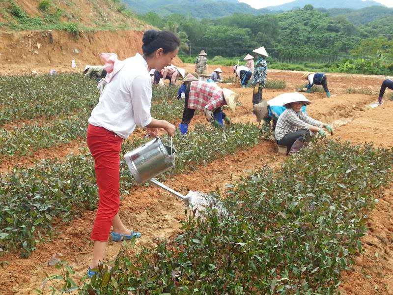 她一边请来云南茶科所专家来到什会村,用半年的时间对该村及邻近村庄方圆几十里的土壤、日照、温湿度、昼夜温差等情况进行考察论证,为成功引种紫鹃茶掌握了可靠数据,一边带领和组织当地村民利用闲置山坡开耕茶园。从此以后,连续三年,她扎根深山,白天头顶烈日在山坡上带领村民挖土填沟开茶园育茶苗;晚上在简陋的工棚里给村民细致地讲解种茶要领。2014年,在她的积极推动下,该村创办五指山妙自然茶业有限公司。
