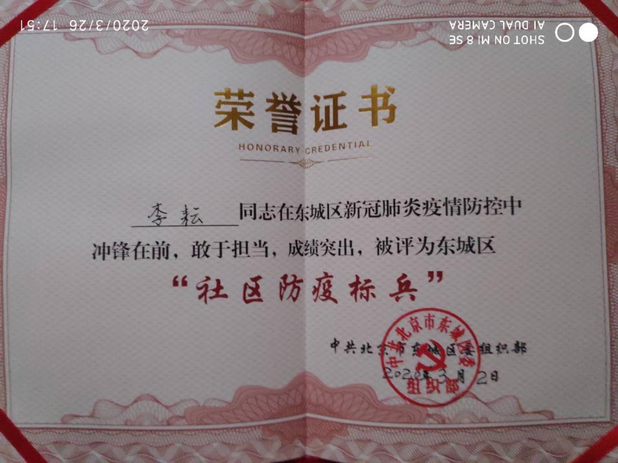 李耘退休前是一名皮肤科大夫,新冠肺炎疫情发生以来,看着其他同行不顾个人安危奋战在一线抢救生命,心里也不停地泛起涟漪:“我也必须做点什么,再苦再累都行?!?月29日,了解到社区疫情防控的需求,李耘毫不犹豫地写下了请战书;2月2日,李耘接到社区通知,在胡同站岗值班;2月3日,作为社区志愿者的李耘便“走马上任”了。