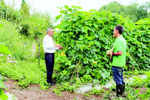 左文学(左)在蔬菜基地调研。