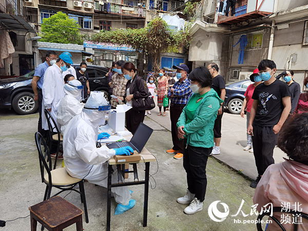 人民网武汉5月15日电 (周雯)5月15日中午,武汉市武昌区东湖村附近的居民按照提前登记的时间,在东湖边一空旷的广场上排队等待进行核酸检测。接下来一段时间,武汉将对全市市民有序开展核酸检测,进一步摸清无症状感染者底数,进而有效管控。