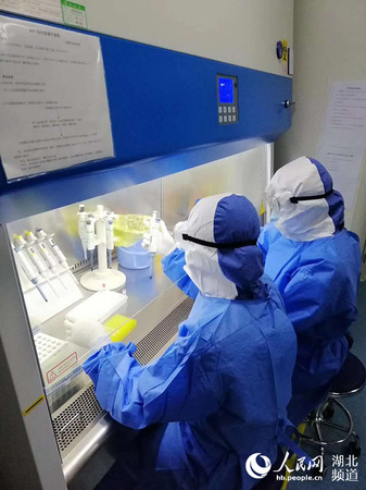 武汉一医学检测实验室24小时不间断检测(受访者提供)