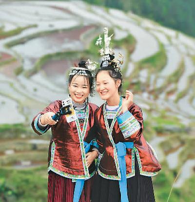 贵州省从江县侗族姑娘直播引客,发展旅游,助力当地脱贫。新华社记者 杨文斌摄