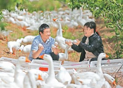 江苏宿迁贫困户王克林夫妇养鹅脱贫。许昌亮摄(人民视觉)