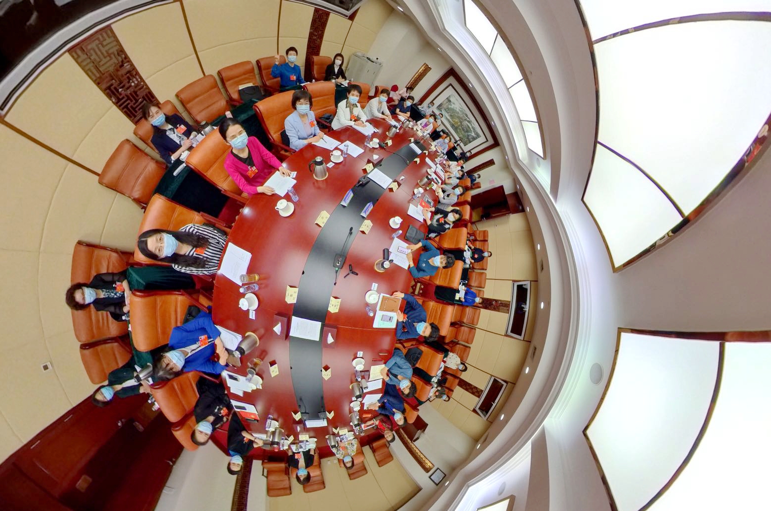 妇联19组的政协委员们,小组会上热议政府工作报告。 特邀委员记者 郑祎 摄