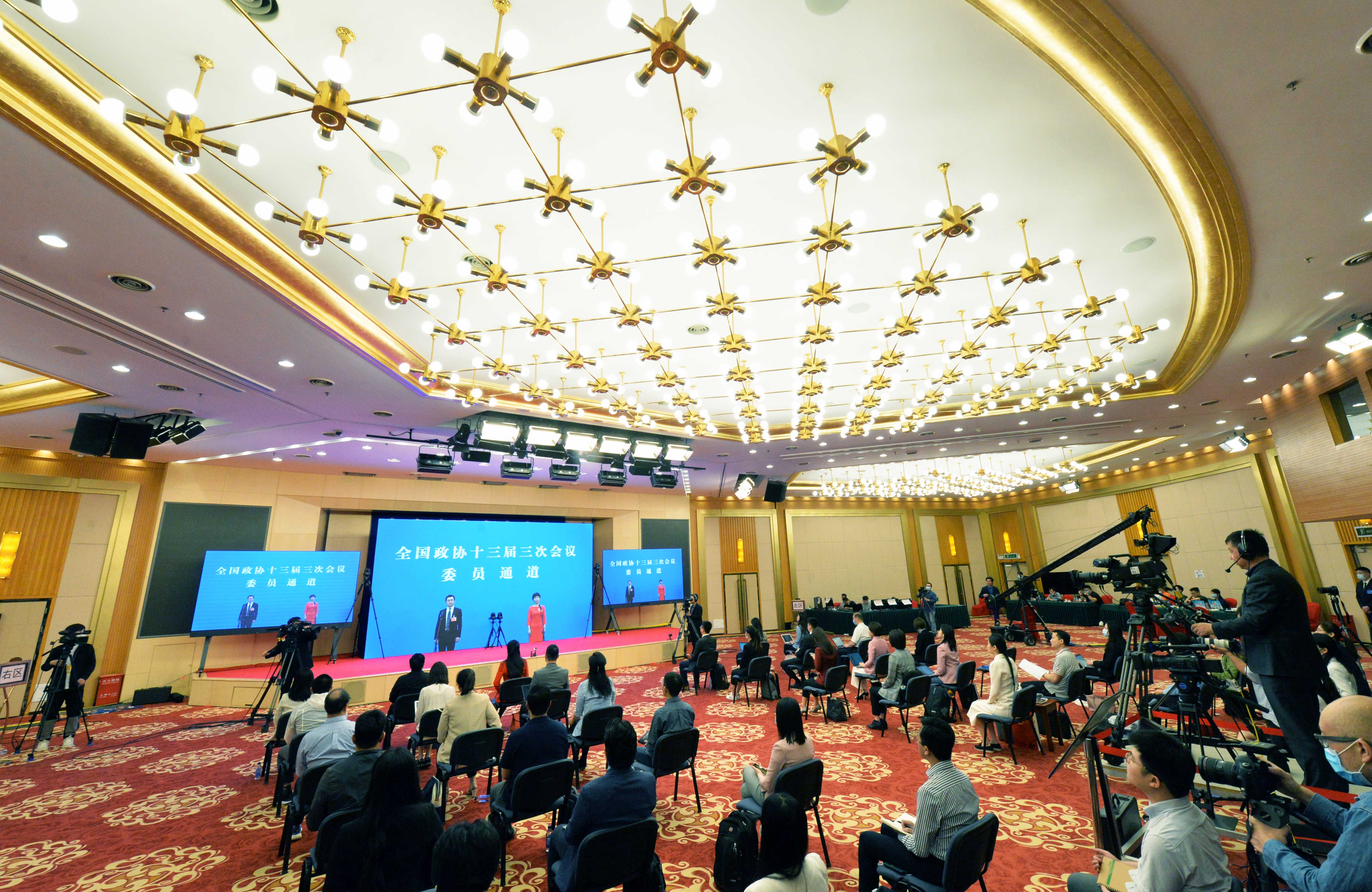 全国政协十三届三次会议第三场“委员通道”采访活动于5月27日14:10在人民大会堂新闻发布厅举行,邀请部分全国政协委员通过网络视频方式接受媒体采访。人民政协报·人民政协网 记者 贾宁 摄