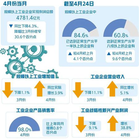 进入4月份,随着统筹疫情防控和经济社会发展各项政策措施逐步落实落地,经济社会秩序进一步恢复,工业企业产销加快,利润状况显著改善。