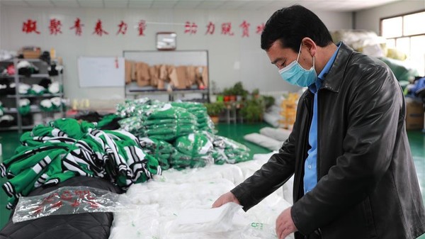 新冠肺炎疫情发生后,甘肃省临夏回族自治州动员扶贫车间生产应急口罩,马天龙带领村民闻令即动。