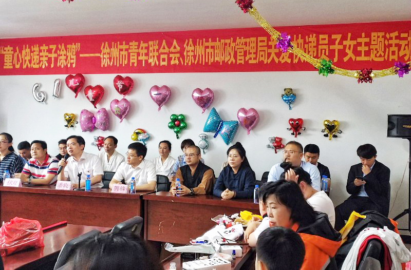 5月30日,“童心快递 亲子涂鸦”——关爱快递员子女庆六一活动在徐州举办?;疃尚熘菔星嗄炅匣岷托熘菔杏收芾砭至现靼?,徐州市青联民族宗教和港澳台海外学人界别、徐州市道教协会承办。团市委书记、市青联主席潘晓,团市委副书记、市青联副主席韩锋出席活动。