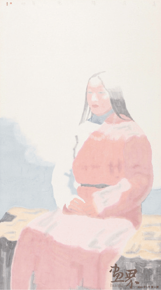 田黎明的创新,从上世纪80年代到今天,一直都在坚持、努力的行进过程之中。创新要有恒久性,其奥秘就在于创新的图式语言本身要有可生长性,要像一颗有生命活力的种子,能在时间的流动里长出新苗、树干、树枝、绿叶,能够年复一年地开花、结果,田黎明作品的图式语言便具有生长性。他1988年创作的《小溪》《草原》,背景是一片空无,年轻和年长的女性面容和身躯极其朦胧,依稀可辨。慢慢的,他笔下的人物五官轮廓变得稍稍清晰起来,景物也从一片空无里淡淡地浮了出来。田黎明最早画古装人物与现代女性、儿童,后来从女性扩展到男性,从儿童扩展到成人。他作品的图式结构也由无背景的单个人的简单,慢慢变成了人物和景色的交集、人物之间参差组合的复杂,便有了《群贤毕至俯仰天地》浑然一体的结构。他的创作视野由早期的淳朴乡村慢慢走向现代城市,穿着时尚的都市女性、扫街的环卫工人、提着行李的打工妹纷纷走进他的画面。原生态的大地河流消失了,取而代之的是高耸的楼群和如织的车流、人流,他的绘画不但有抒情性,也呈现出具有抒情意味的社会性。艺术语言的生长是一个漫长的过程,田黎明绘画语言的生长过程清晰、有序,每一步都走得很坚实。