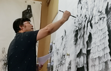 有了这个基本构思后,就要考虑如何构图来展示人物形象,以及用何种技法来展现等艺术手段。