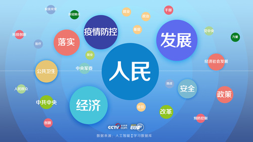 特殊时期召开的大会,举世瞩目。当前形势怎么样?发展目标怎么定?下阶段工作怎么干?凡是民众热切关心的、当下中国迫切需要解决的,都是习近平总书记与代表委员共商国是的主要议题。经央视网人工智能I学习数据库对习近平活动报道全面分析,“人民”位于高频词之首。
