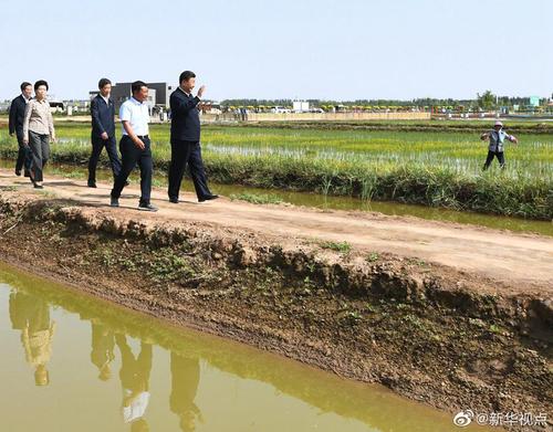 习近平总书记9日在银川考察调研。他先后来到贺兰县稻渔空间乡村生态观光园、贺兰山东麓葡萄种植园,了解当地发展特色农业产业、加强贺兰山生态?;さ惹榭觥#ㄎ淖旨钦撸赫畔?、朱基钗 摄影记者:鞠鹏、谢环驰、王晔、燕雁)