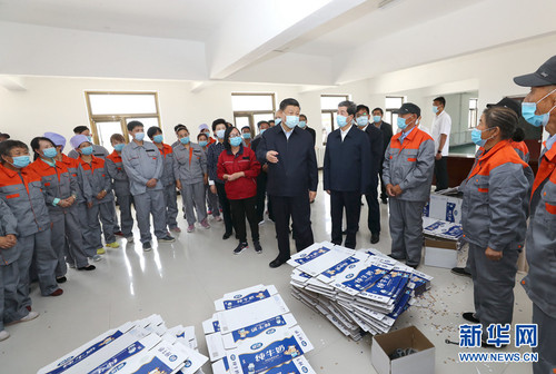 6月8日至10日,中共中央总书记、国家主席、中央军委主席习近平在宁夏考察。这是6月8日下午,习近平在吴忠市红寺堡区红寺堡镇弘德村扶贫车间,同正在加工制作纸箱的村民交流。 新华社记者 鞠鹏 摄