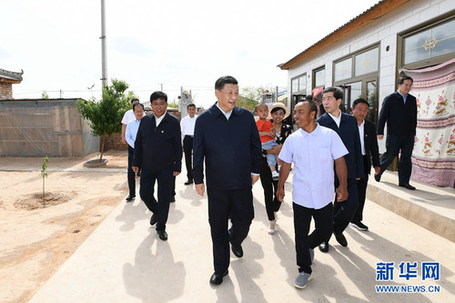 6月8日至10日,中共中央总书记、国家主席、中央军委主席习近平在宁夏考察。这是6月8日下午,习近平在吴忠市红寺堡区红寺堡镇弘德村察看回族村民刘克瑞家院落。 新华社记者 谢环驰 摄