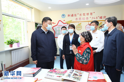 6月8日至10日,中共中央总书记、国家主席、中央军委主席习近平在宁夏考察。这是6月8日下午,习近平在吴忠市利通区金花园社区考察民族团结社区创建工作情况。 新华社记者 谢环驰 摄