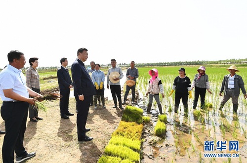 6月8日至10日,中共中央总书记、国家主席、中央军委主席习近平在宁夏考察。这是6月9日下午,习近平在银川市贺兰县稻渔空间乡村生态观光园,了解宁夏现代农业发展和特色农产品情况。 新华社记者 鞠鹏 摄