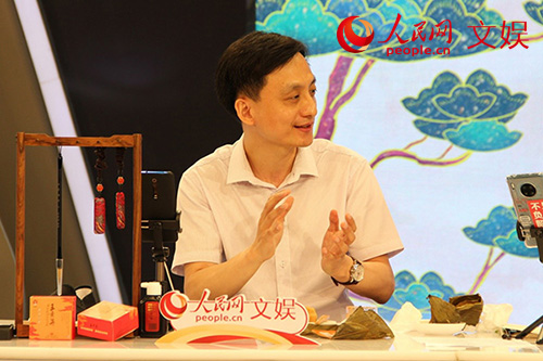 胡雁讲述非遗好物背后的历史文化。人民网 杜佳妮摄