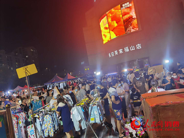 6月20日,消费者在山东烟台某购物广场夜市选购商品。