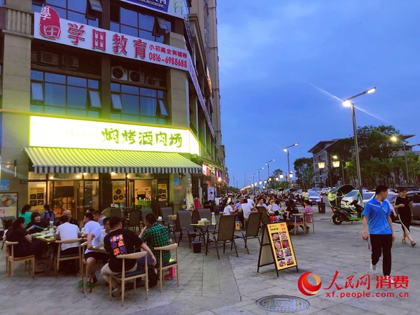 6月21日,居民在山东滨州某小区外夜市宵夜。