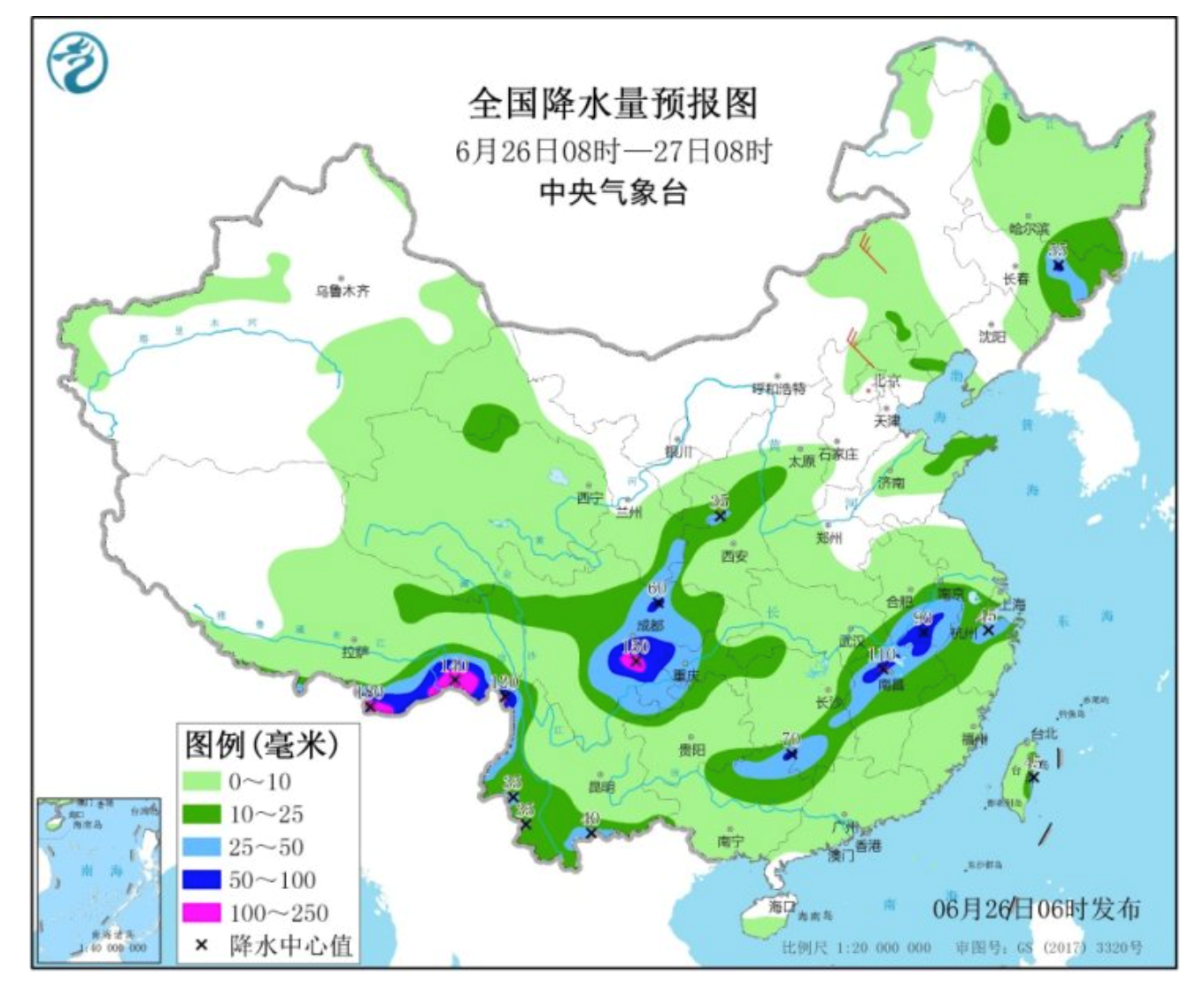 预计今天,甘肃南部、四川盆地中西部、江西中北部、浙江中北部、安徽南部等地有大到暴雨,四川中南部局地大暴雨(100~180毫米),局地伴有雷暴大风、冰雹等强对流天气。中央气象台今晨继续发布暴雨蓝色预警。