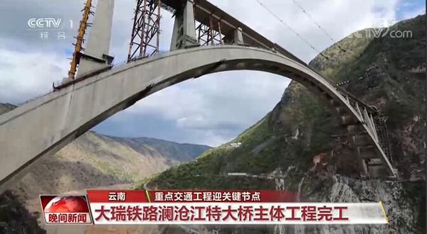 云南:大瑞铁路澜沧江特大桥主体工程完工