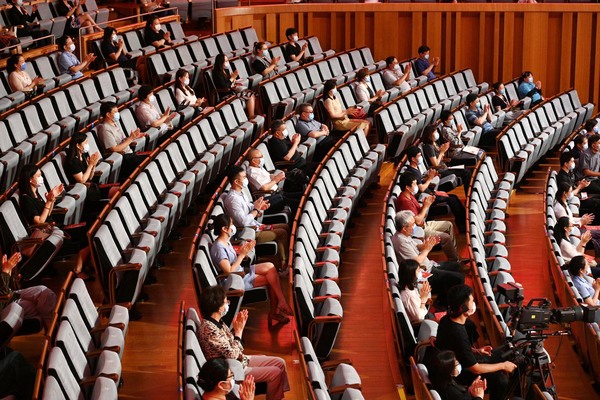 因疫情防控的需要,不能有太多观众亲临现场,但是在党生日的这一天,国家大剧院在严格落实疫情防控要求的前提下,邀请首都百名优秀党员现场观摩本场音乐会。这其中,既有来自抗疫一线的医护党员代表,也有公安干警和来自基层社区的党员代表。