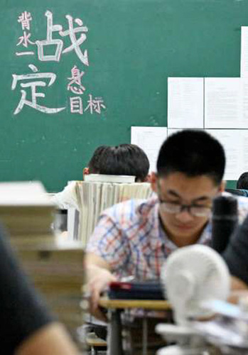 “思维缜密手勤快,坚持到底惊喜来!”河南省济源一中高三教室的黑板上,每天都有老师写的“考前一句话”??季砩铣撕毂逝牡姆质?,也有一句暖暖的话语:“你是个有心、有天赋的孩子?!薄凹佑?!一如既往地看好你?!?/p>