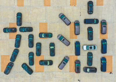 4日,内蒙古呼和浩特爱心司机将车辆摆放成“加油”字样为高考学子鼓劲。丁根厚摄(影像中国)