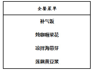 PS:“全餐”指导的是午餐和晚餐,而早餐建议一份有机精力汤即可。