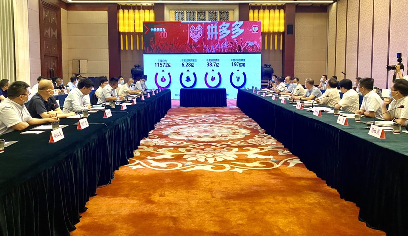 7月15日,拼多多代表在山西省农业农村厅介绍平台的农产品上行情况。(摄影 石头)