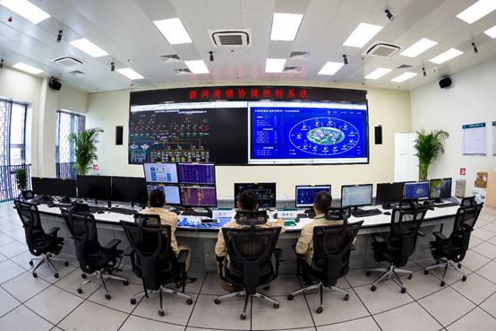 国网江苏电力专业人员正在监控中心查看大规模源网荷储协调控制系统的运行情况