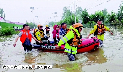 因受持续强降雨影响,六安市部分河道上涨倒灌。晚上8点左右到了固镇,队员们发现灾情远比想象中的还要严重,他们来不及吃一口饭就立刻投入到湍急的水流中。当天的救援工作持续到深夜11点多,转运受困群众150余人。
