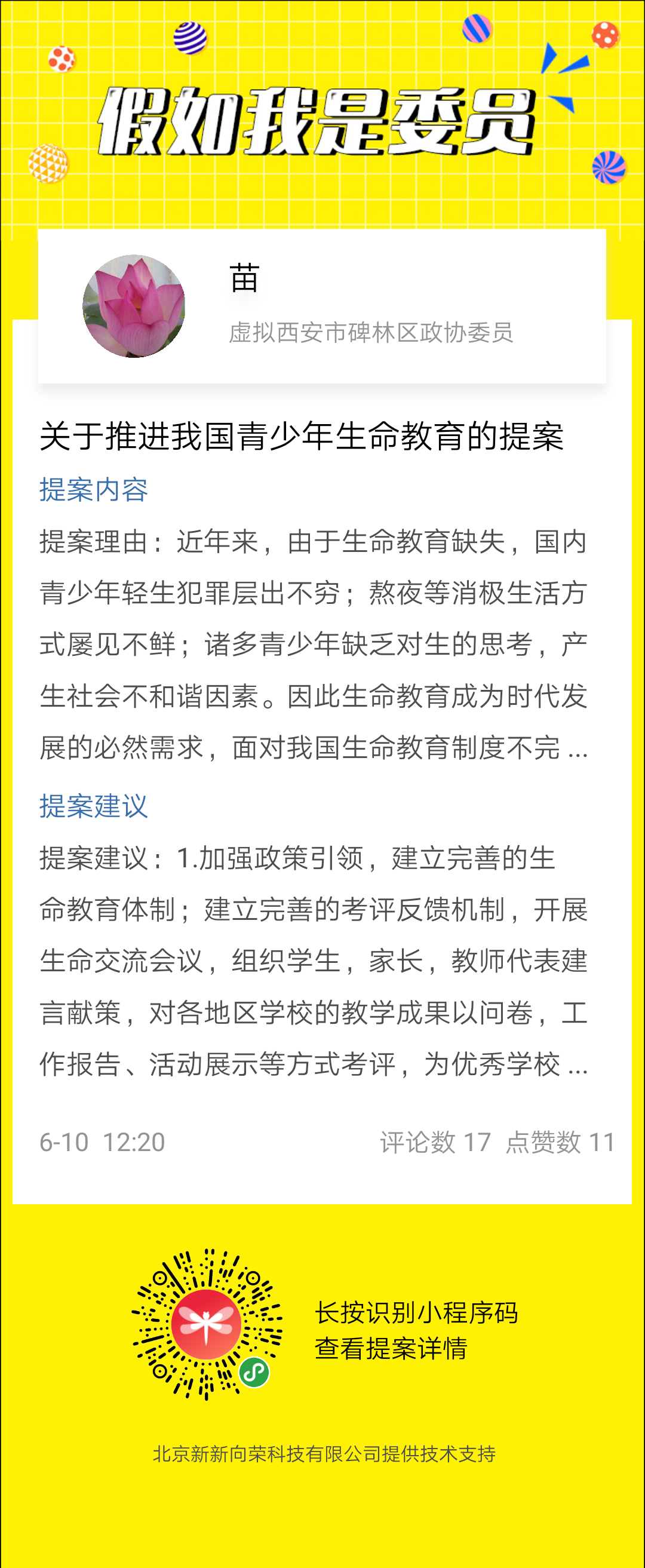 小小的虚拟委员,大大的提案能量,学生提案上两会,精彩提案不间断,假如我是委员,持续推送虚拟委员同学们的两会提案风采!