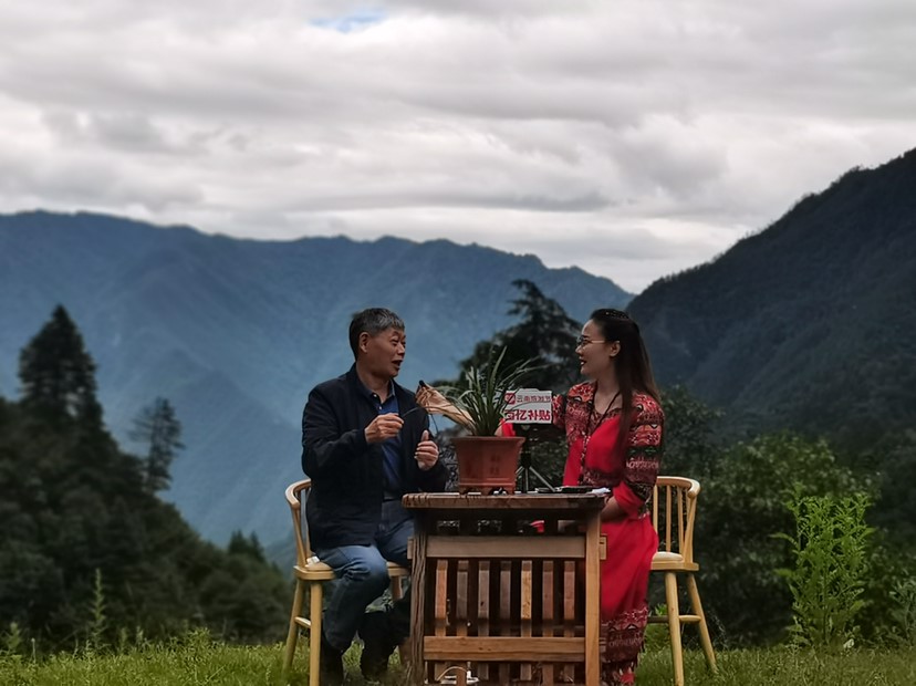 此次直播中,“滇金丝猴之父”龙勇诚(左)做客直播间,为网友讲解滇金丝猴相关知识,推介滇金丝猴国家公园。(陆辰曦 摄)