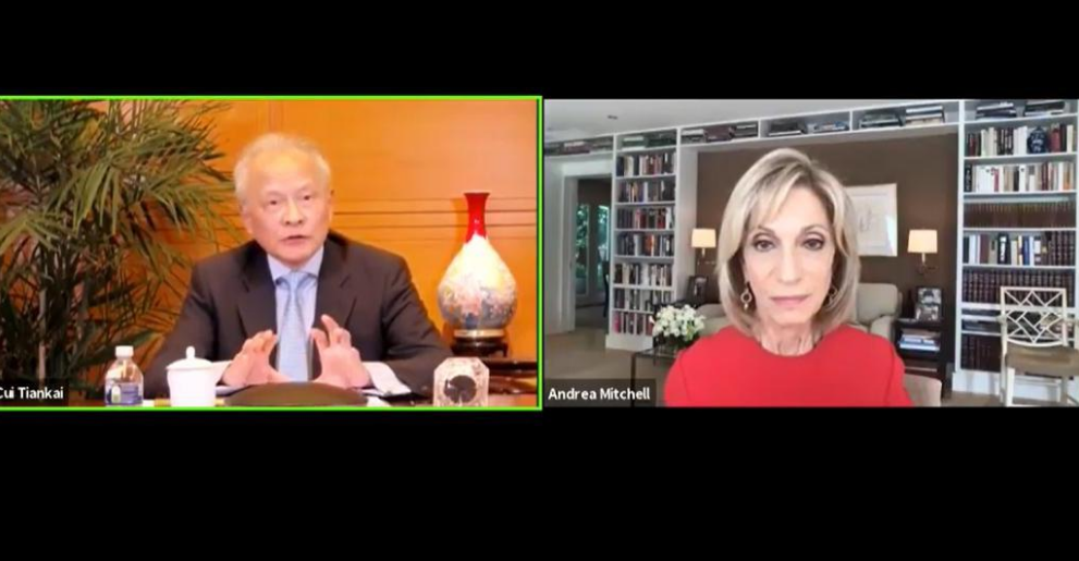 8月4日,中国驻美大使崔天凯应邀出席2020年阿斯彭安全论坛,就中美关系有关问题与阿斯彭战略小组执行主任尼古拉斯·伯恩斯以及美国全国广播公司对外政策首席记者安德利亚·米歇尔进行在线对话,并回答观众提问。