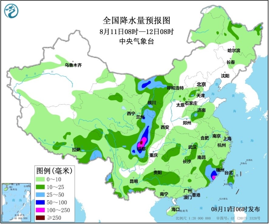 11日,强降雨主要出现在西北地区东部,内蒙古中西部、宁夏、甘肃东部、陕西西部等地的部分地区有中到大雨,局地暴雨。
