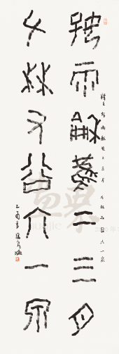 “好雨左林”篆书联-273×70cm-2005年-潘飞仑