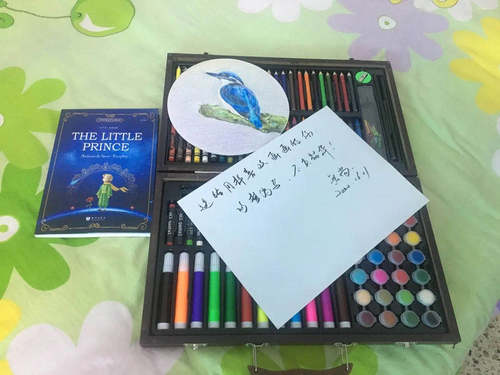 周六一早,小涵不仅收到了自己一直想要的彩笔套装,还收到了捐赠人送给她的一幅画,画中的翠鸟安静地立在枝头,仿佛在仰望星空。