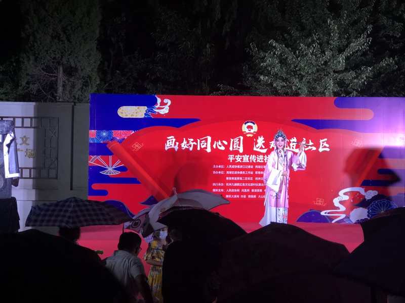 人民政协网杭州8月27日电(记者 鲍蔓华 通讯员 康恺)画好同心圆,平安宣传进社区。8月26日傍晚,伴随着一场秋雨的结束,杭州市西湖区翠苑街道翠苑二区开始逐渐热闹了起来。一辆辆大巴驶进翠苑二区,一个个展板开始架设,一盏盏灯光陆续打开……居民们成群结队地赶往社翠苑二区小广场,言语中是止不住的兴奋与激动。原来,这里即将开始一场别开生面的“画好同心圆,平安宣传进社区”文艺演出活动。