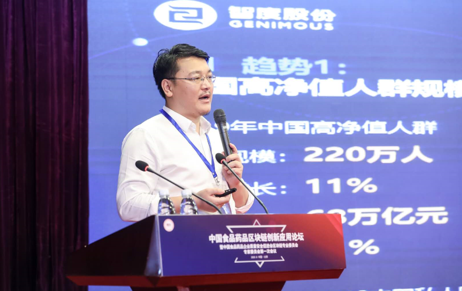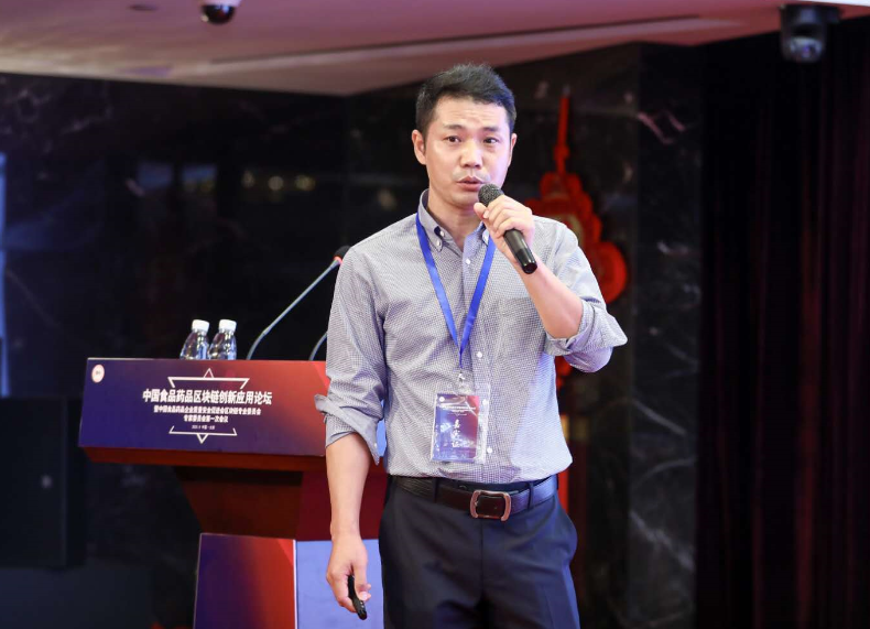 中国食药区块链专委会区块链专委会副秘书长、智度智链总经理王鹏飞发表主题演讲